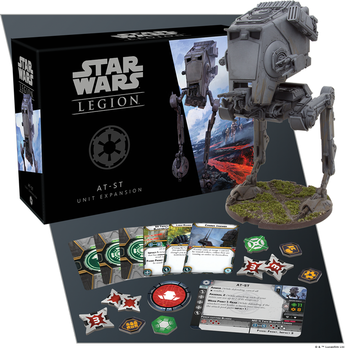 "An AT-ST is an awe-inspiring sight to the average foot soldier. It towers above the battlefield, stalking inimically forward on mechanized legs and raining a hail of fire and death from its laser cannons and powerful weapons systems. With the AT-ST Unit Expansion for Star Wars™: Legion, you’ll find a single finely sculpted, massive AT-ST miniature, which can be assembled to loom over the battlefield and provide a rallying point for your entire army. Alongside this beautiful miniature, you’ll find an assortment of all the unit cards and upgrade cards that you’ll need to fully integrate the AT-ST into the Empire’s war machine—and your armies."