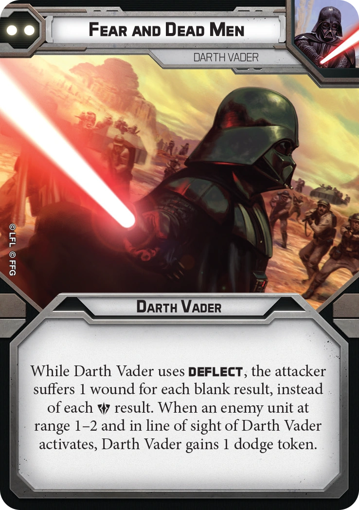 result. When an enemy unit at range 1-2 and in line of sight of Darth Vader activates, Darth Vader gains 1 dodge token.