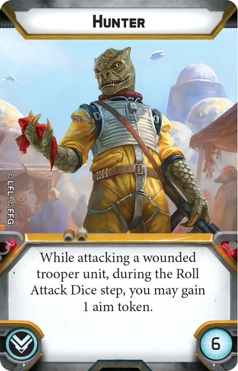 While attacking a wounded trooper unit, during the Roll Attack Dice step, you may gain 1