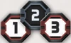 Used to denote damage suffered for any unit with a wound threshold or resilience greater than 3. This token indicates 3 wounds. | Legion Core Set & Unit Expansions containing units with a wound/resistance value of more than 3 |